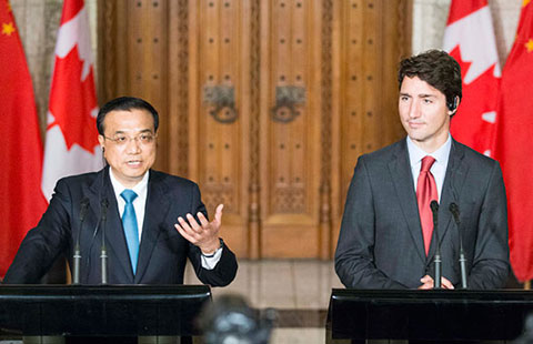 Premier Li Keqiang and Canadian Prime Minister Justin Trudeau met for what Li called an inaugural annual dialogue in Ottawa, just three weeks after Trudeau visited China.
