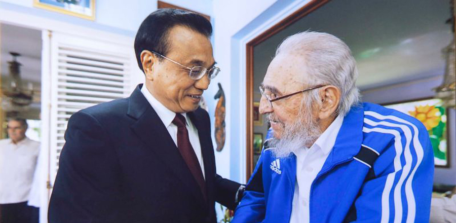Premier Li Keqiang met with Fidel Castro, the 90-year-old leader of the Cuban Revolution, on Sunday during his visit to the island nation in an expression of respect for the legendary revolutionary.