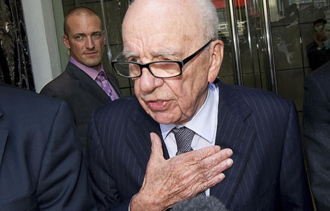 With the last edition of Britain's News of the World tabloid in hand, Rupert Murdoch arrived at the offices of his U.K. newspaper division Sunday to face the growing phone-hacking scandal that prompted the paper's closure.
