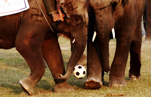 Elephant football is one of the highlights of the annual Chitwan Elephant Festival, which attracts many tourists as well as locals.