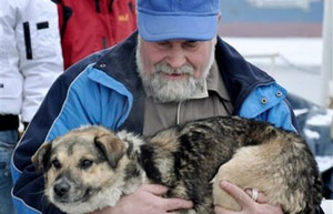 Baltic, the adventurous dog who floated at least 75 miles (120 kilometers) on an ice floe, has a new owner: The seaman who rescued him.