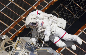 NASA astronaut Andrew Feustel works outside the International Space Station during the space shuttle Endeavour's first spacewalk in support of construction and maintenance of the orbiting laboratory in this photograph provided by NASA and taken May 20, 2011.