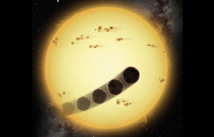 A retrograde hot Jupiter: the transiting giant planet orbits very close to the star and in a direction opposite to the stellar rotation, in this artist's rendering released May 11, 2011.