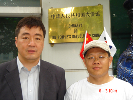 中國駐韓國大使館參贊為環球走單騎留言
