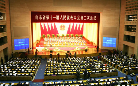 2月13日,山東省第十一屆人民代表大會第二次會議在濟南山東會堂開幕。會議聽取山東省長姜大明山東省人民政府工作報告;審查山東省2008年國民經濟和社會發展計劃執行情況與2009年計劃草案的報告;審查山東省2008年預算執行情況和2009年預算草案的報告。