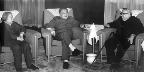 1983年4月,鄧小平和鄧穎超、廖承志共商祖國(guó)和平統(tǒng)一大計(jì)。鄧小平是第五屆全國(guó)政協(xié)主席,鄧穎超是第六屆全國(guó)政協(xié)主席。