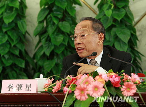 大會發言人李肇星回答記者提問。新華社記者 龐興雷 攝