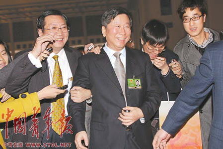 3月7日,中國證監會主席尚福林列席在人民大會堂舉行的上海代表團全體會議。會后,有記者追問內地當前股市走向等問題,尚福林笑而不答,并建議記者到證監會每周例行新聞發布上獲得信息。記者 陳劍攝