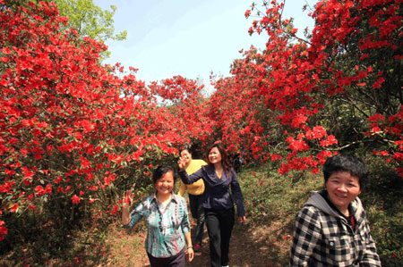 3月15日,在廣西融水苗族自治縣懷寶鎮,游客在杜鵑花叢中游玩。 陽春三月,位于廣西大苗山深處融水縣懷寶鎮的野生杜鵑花競相綻放,令前來賞花的游人沉醉流連。 新華社 龍濤 攝
