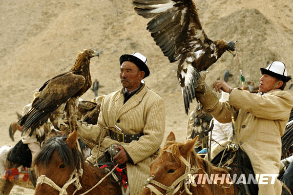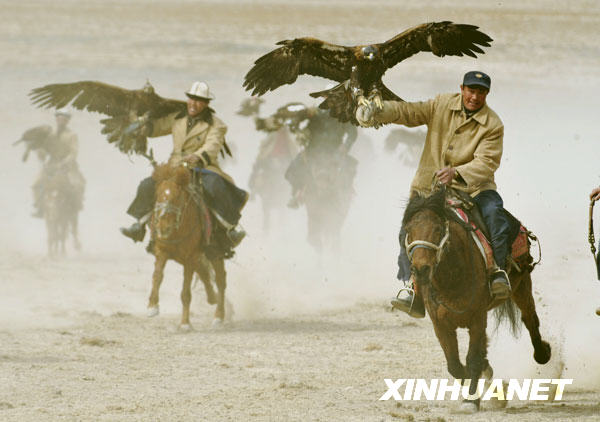 當日,在新疆阿合奇縣蘇木塔什鄉舉辦的“第二屆獵鷹節”上,近百名彪悍的牧民騎著馬、擎著鷹,在“放飛”“捕兔”等競技中展示身手。新疆阿合奇縣蘇木塔什鄉被稱為“獵鷹之鄉”,在此居住的柯爾克孜族人馴養獵鷹有著悠久歷史,為了保護獵鷹和傳承傳統,當地政府對馴鷹人進行登記備案,并發放馴養證。政府還專門挑選了10位至少是六代的馴鷹傳人,每月發放500元工資,由他們負責定期檢查馴鷹情況和獵鷹的去向。新華社記者沈橋 攝