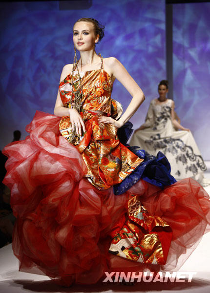7月2日,模特正在展示婚紗。新華社記者 裴鑫 攝