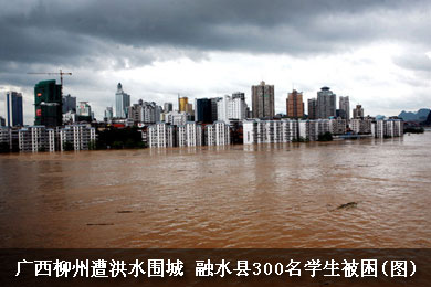 廣西柳州遭洪水圍城 融水縣300名學生被困(圖) 2009-07-05 11:09
