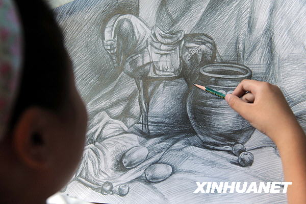 一暑期美術學校,一名孩子在學繪畫。新華社發(張延林 攝)