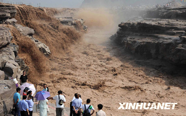 7月18日,游客在黃河壺口瀑布游覽觀賞。新華社發(祁小軍 攝)