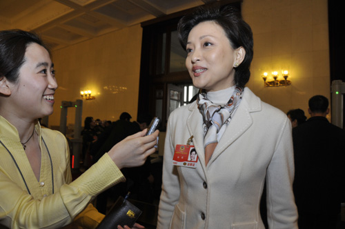 3月3日,全國政協委員楊瀾在全國政協十一屆二次會議開幕前接受新華網記者采訪。陳濤 攝