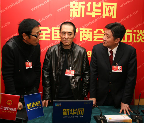3月3日,張藝謀、張會(huì)軍、陳道明三位委員在全國(guó)政協(xié)十一屆二次會(huì)議開幕前相聚新華網(wǎng)。馬軼群 攝 全國(guó)政協(xié)委員、著名導(dǎo)演張藝謀:政協(xié)委員和老百姓一樣,百姓關(guān)心的熱點(diǎn)也是我們關(guān)注的,尤其是應(yīng)對(duì)金融危機(jī)和關(guān)系民生方面的問題。比如,剛剛公布的食品安全法,我覺得這與每個(gè)人的生活密切相關(guān),希望和其他委員交流一下,看看在這方面能有什么好的提案。 全國(guó)政協(xié)委員、著名音樂教育家金鐵霖:這段時(shí)間,食品藥品安全引起大家關(guān)注,也涉及到明星代言的問題。我認(rèn)為,吃進(jìn)嘴里的關(guān)系百姓生命安全,明星要謹(jǐn)慎代言,否則就要負(fù)連帶責(zé)任。今年我有兩個(gè)提案,一個(gè)是關(guān)于青少年音樂教育,另一個(gè)是進(jìn)一步提高媒體導(dǎo)向。