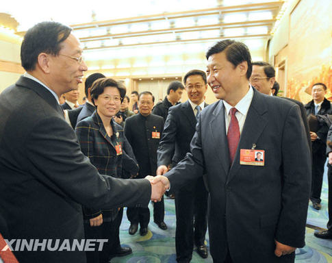 3月5日,中共中央政治局常委、國家副主席習近平參加十一屆全國人大二次會議上海代表團的審議。新華社記者馬占成攝