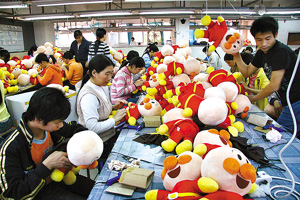東莞市茶山鎮塘角管理區,玩具廠的工人正在作業,沉著面對困難,保持信心是關鍵 記者 宋金峪 實習生林耀鏘 攝