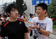 住在這里的人們似乎已經走出了地震的陰影。在板房區的操場上,數十人在舞劍、鍛煉身體;還有幾十名災民在齊唱《祖國,你好!》。據悉,他們每天都在操場上唱歌、跳舞。