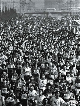 來看一下這張反映1985年北京一場馬拉松賽的黑白照片。誠然,要動員這些人,就必須有一個有效的政府。除此之外,還需要金錢和大眾真正的興趣。